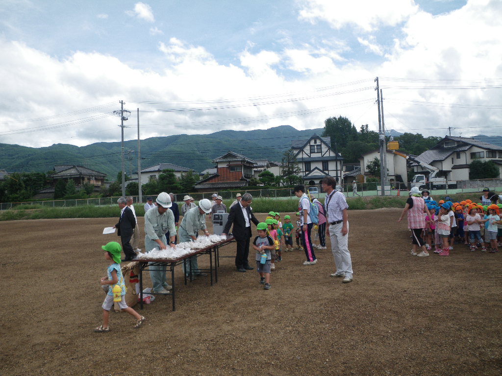 この工事は地元で応援している松本山雅FCのホームグラウンドアルウィンの芝生を更新するにあたり、このアルウィンの芝生を地元の学校などに使ってもらおうということで市内各地の学校などで行われました。